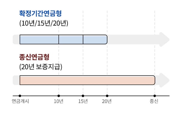 고객 니즈에 맞는 연금수령 방법 선택으로 종신연금(20년 보증) 또는 확정기간연금형(10년/15년/20년)으로